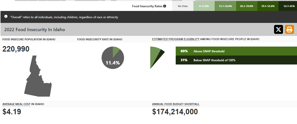- Ada County: 33,460 individuals struggle with food insecurity.